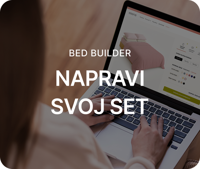 Kombinuj boje i materijale koji ti se dopadaju bez ograničenja i dodaj čak do 9 posteljnih delova pomoću našeg novog konfiguratora posteljine.
